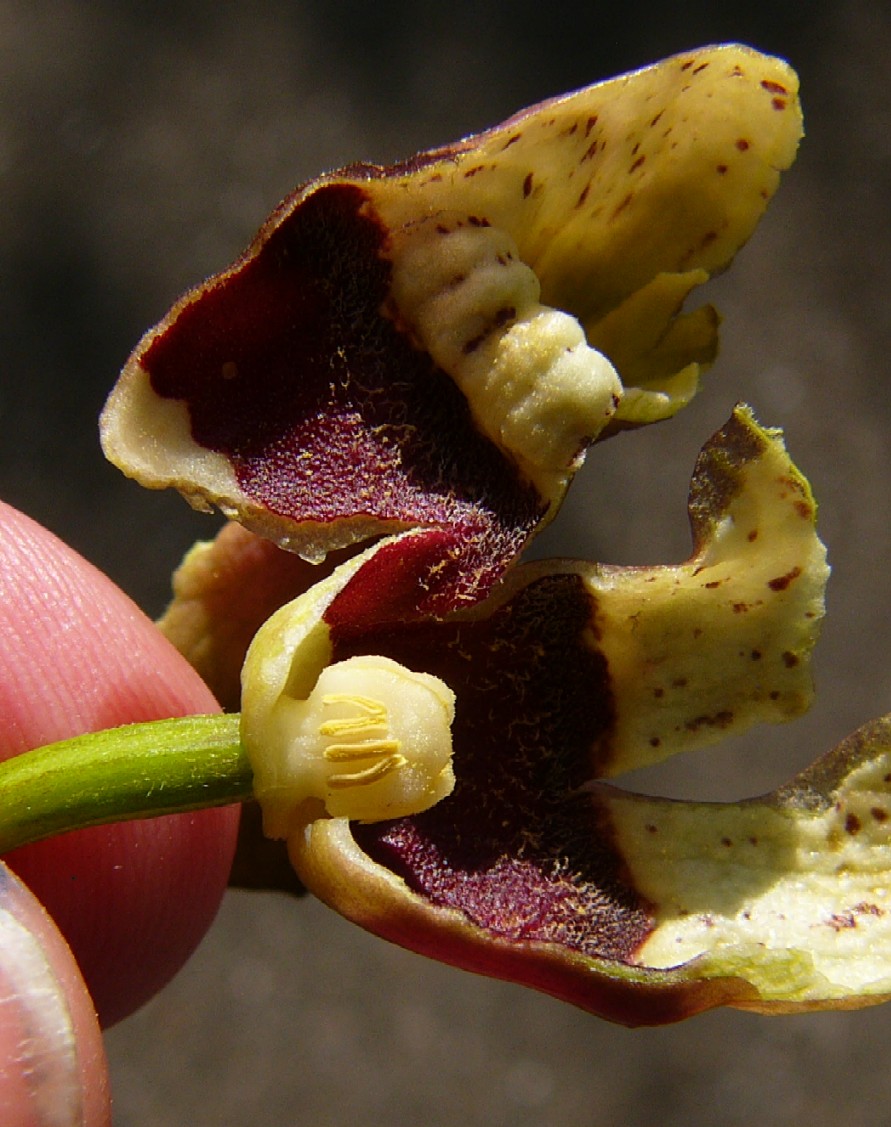 erweitert. Die Blüten sind eine Falle für besuchende Insekten, die durch