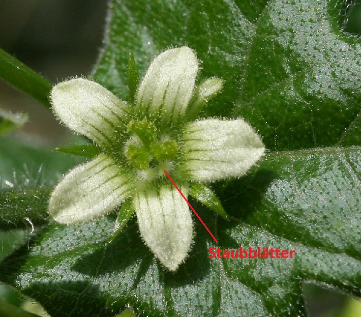 5 im unteren Teil verwachsenen Kronzipfeln, Filamente der Staubblätter