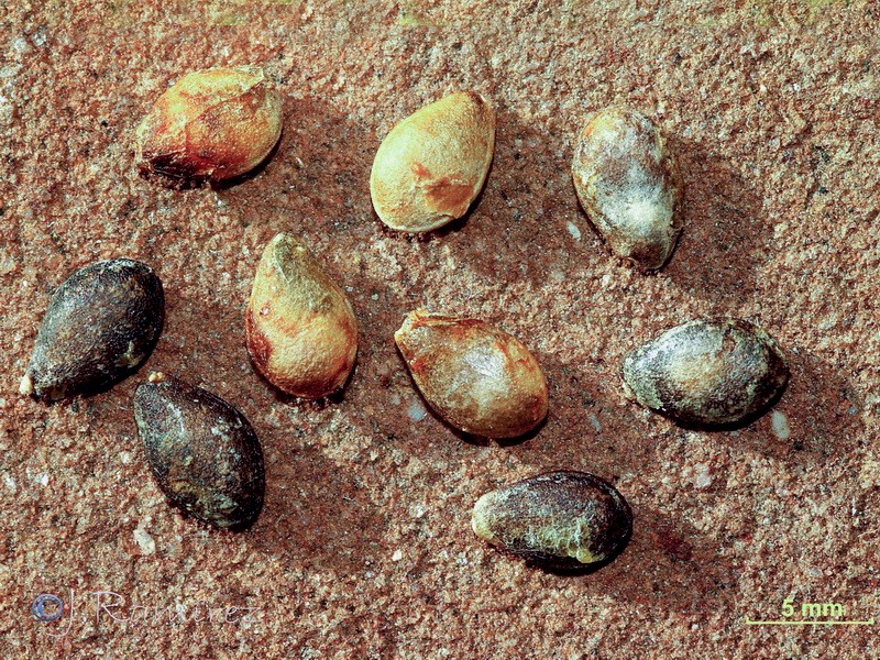 Samen eiförmig abgeflacht, 5 - 6 mm lang, auf der Fläche